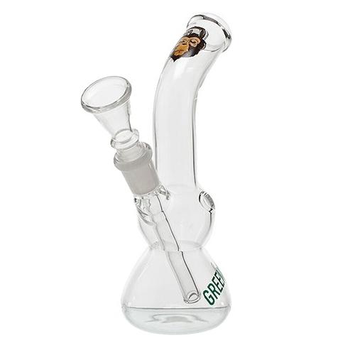 Małe, poręczne bongo, które dzięki swoim rozmiarom może być kompanem najśmielszych podróży. Jak widać na zdjęciu, bongo szklane posiada niecodzienną grafikę małpy, która jest już symbolem marki. Jego wielkość wcale nie musi przekładać się na moc. Jest zupełnie odwrotnie. W tym bongosie drzemie niezbadana siła, która może wbić cię w krzesło już po jednym buszku. Odpowiednio duży dzban zmieści sporą ilość wody, a ona przefiltruje dym w odpowiednim stopniu, byś mógł poczuć się komfortowo za każdym razem gdy siądziesz do tego bonga. Cybuch jest duży, a jego pojemność daje o sobie znać już przy pierwszym napełnieniu.