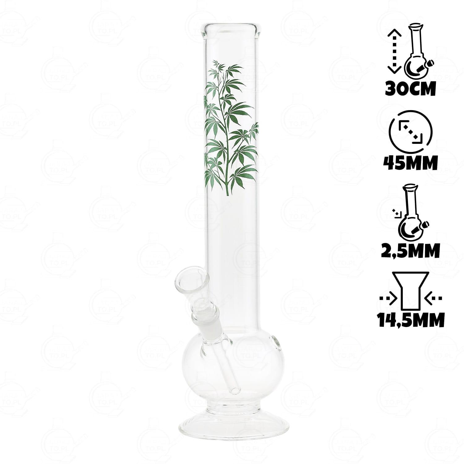 Klasycznych kształtów bongo o wysokości 30 cm. Posiada sprzęgło do kontrolowania wdychanego dymu do płuc. Mimo braku miejsca na lód, rura jest na tyle duża, że można wrzucić kostki lodu do wody. Jest to świetny sposób na schłodzenie chmury. W zestawie znajdziesz również dopasowany cybuch do wielkości bonga.