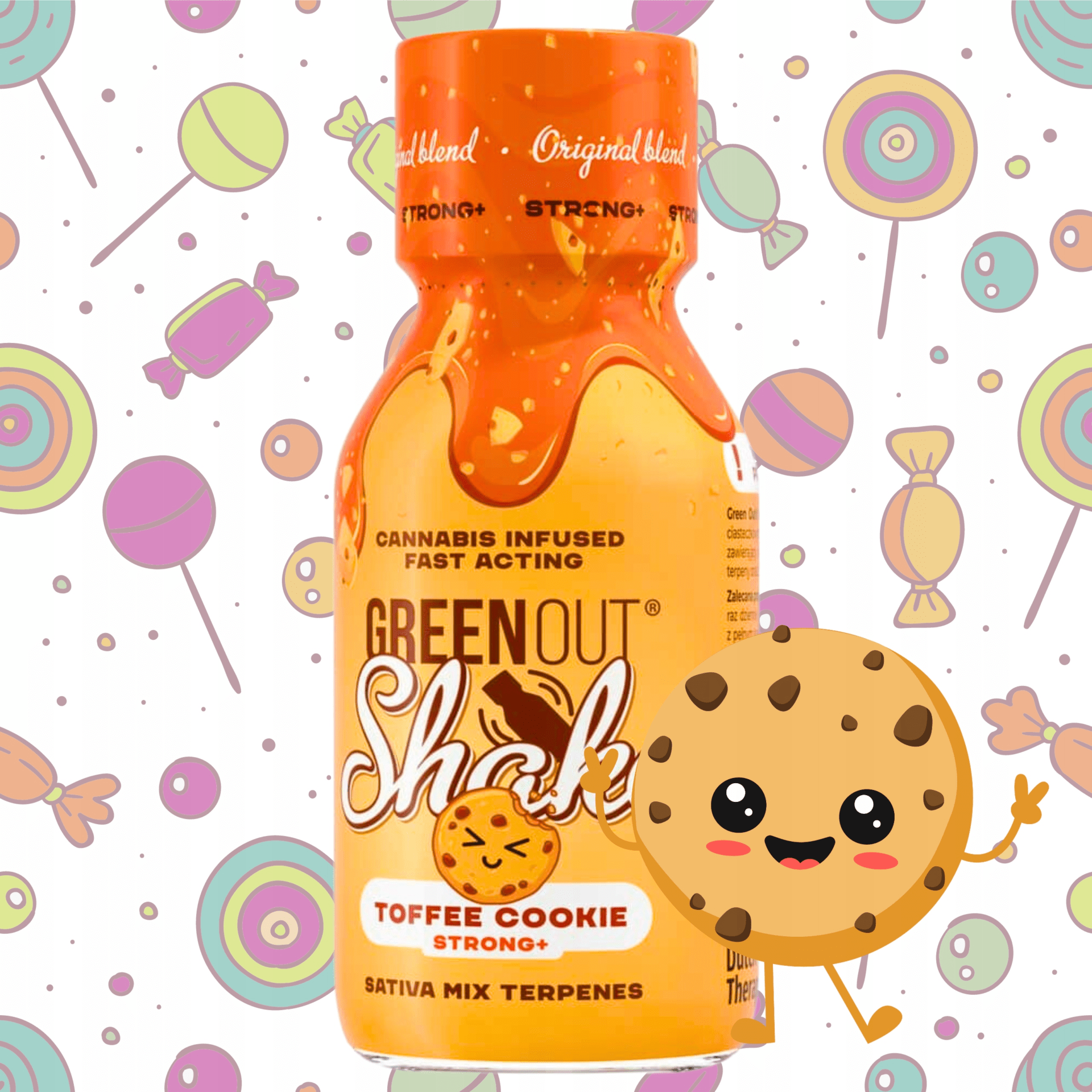 Green Out Shake! o smaku Toffee Cookie – to smaczny, ciasteczkowo karmelowy suplement konopny o przyśpieszonym oraz poszerzonym działaniu, zawierający naturalne fitokanabinoidy, flawonoidy oraz profil terpenowy mieszanek typu Sativa. Jest to w 100% naturalny, legalny produkt a zarazem jedyny – o tak synergicznym działaniu. Pomoże zapewnić Ci stan relaksu oraz ulgę w występujących dolegliwościach. Wyprodukowany z naszego najwyższej jakości olejku konopnego.